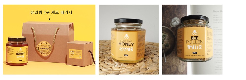 1구 유리병 내용구성 : 천연벌꿀 500g(20.0) / 사양벌꿀 500g(15.0) / 꿀벌화분 240g(20.0)