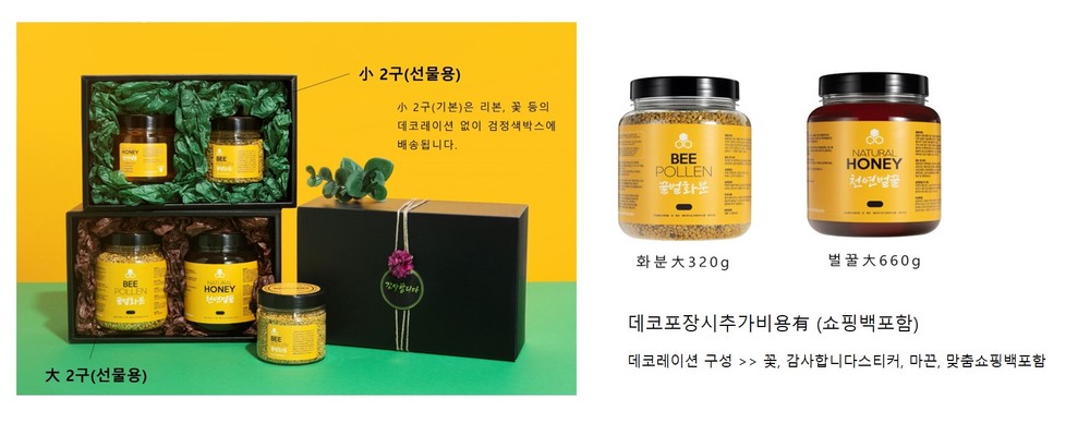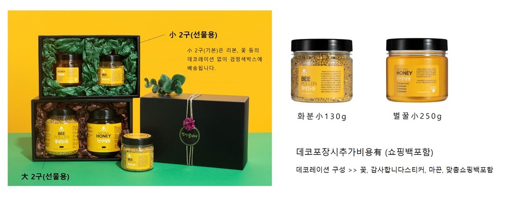 1구 小 내용구성 : 천연벌꿀 250g(15.0) / 꿀벌화분 130g(15.0)